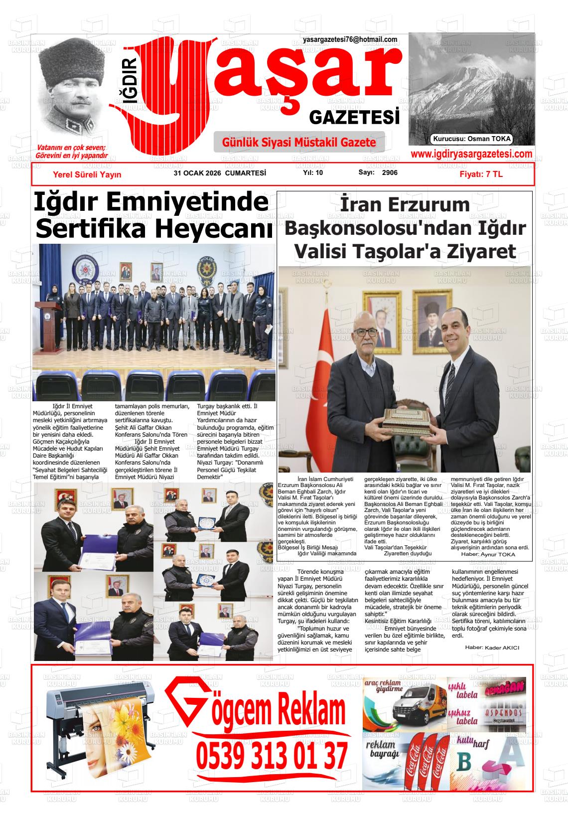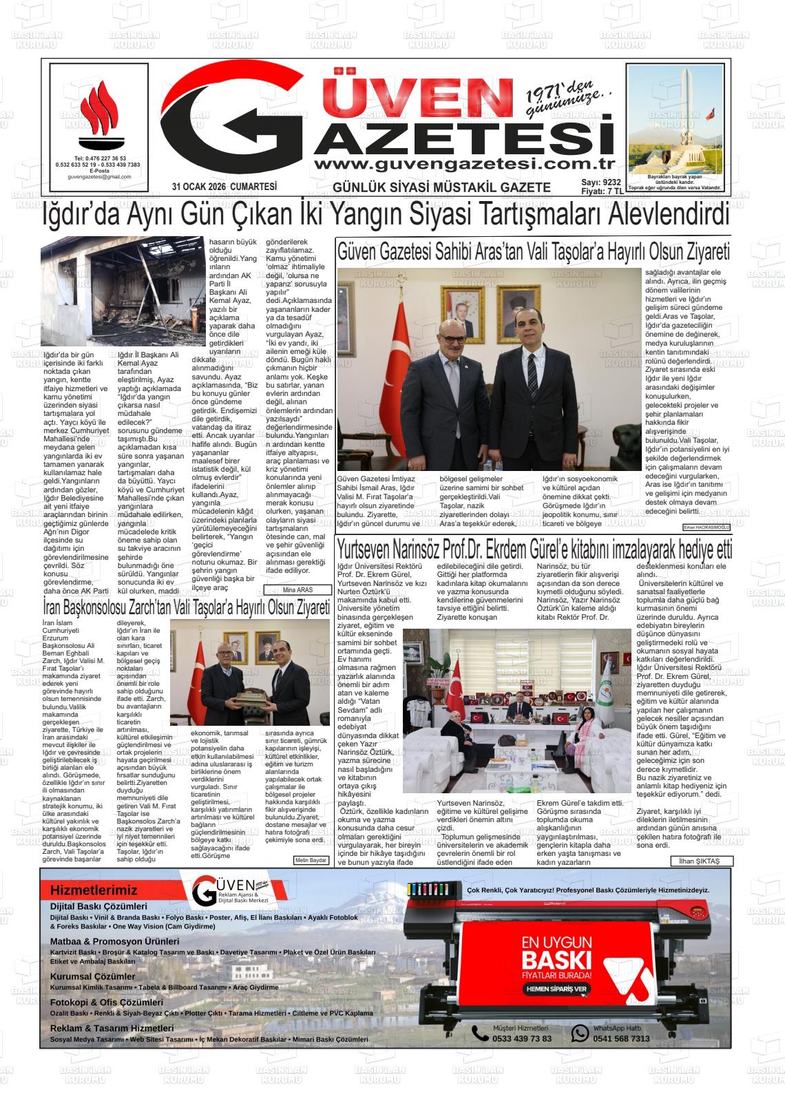 Iğdır Yerel Gazeteleri 30 Ocak 2026, Cuma Günü Manşeti